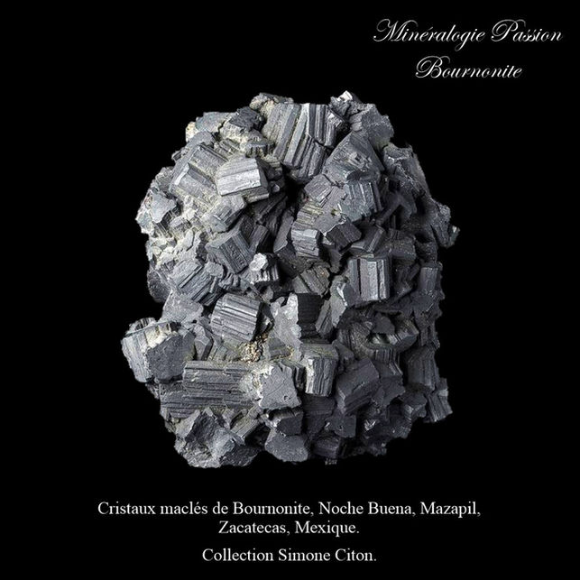 La bournonite est surtout célèbre pour ses macles cruciformes caractéristiques "en roues dentées" ou en "pignon d'engrenage".
